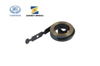 卷尺发条系由钢带卷制而成,利用钢带的弹性产生扭力,发条内孔与卷尺的中心轴相接,当卷尺拉出时,轴与发条产生相对旋转,发条产生扭力,卷尺需回收时利用卷尺发条的扭力将尺带收回盒中。